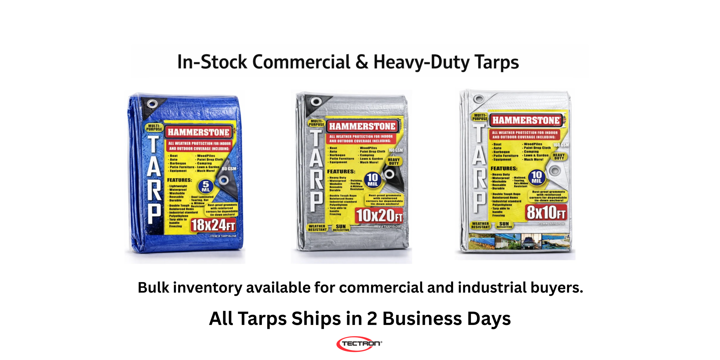 Tarps are stocked and ready to ship, not drop-shipped.